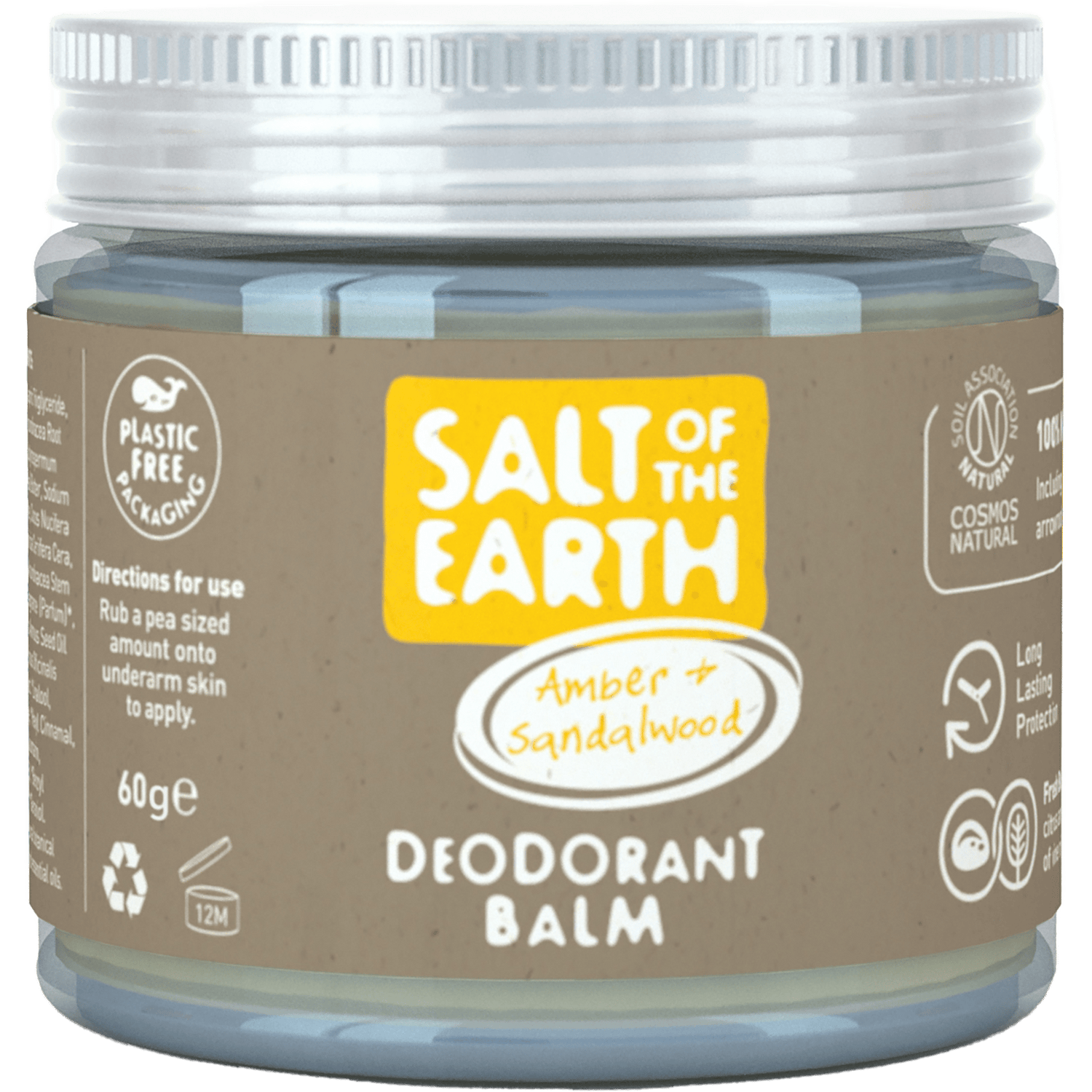 Say goodbye to body odour with Salt of the Earth's Amber & Sandalwood Natural Deodorant Balm! This delightful balm is naturally scented with botanical extracts and is perfect for eco-conscious folks. Housed in a recyclable glass jar, it's a fab choice for reducing plastic waste. Packed with nourishing shea butter and coconut oil, it keeps your skin happy and fresh all day. Plus, it's cruelty-free and approved by the Vegan and Vegetarian Societies. Stay fresh, smell great, and do your bit for the planet with Salt of the Earth!