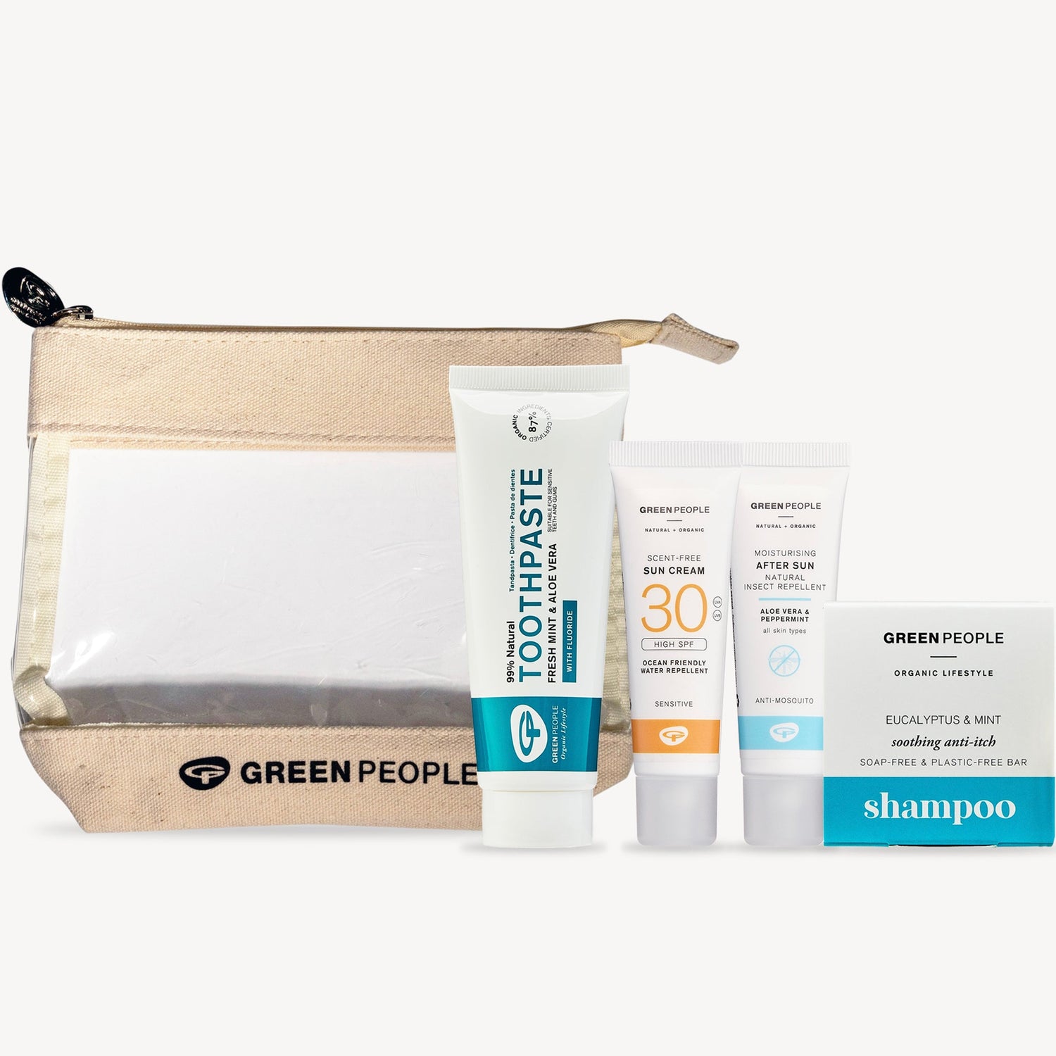 Get festival-ready with this Ultimate Festival Survival Set, designed to keep you fresh, protected, and stress-free in a compact, travel-friendly case. This essential kit includes the Scent Free Sun Cream SPF30 (30ml), perfect for sensitive skin and prickly heat; a zero-waste Eucalyptus and Mint Shampoo Bar (50g) that doubles as a body wash, offering long-lasting freshness without plastic or the need for conditioner; Fresh Mint Toothpaste with Fluoride (75ml) for a sparkling smile and gentle gum care; and a Moisturising After Sun (30ml) with natural insect repellent, protecting you from bites for up to four hours while soothing sun-kissed skin.