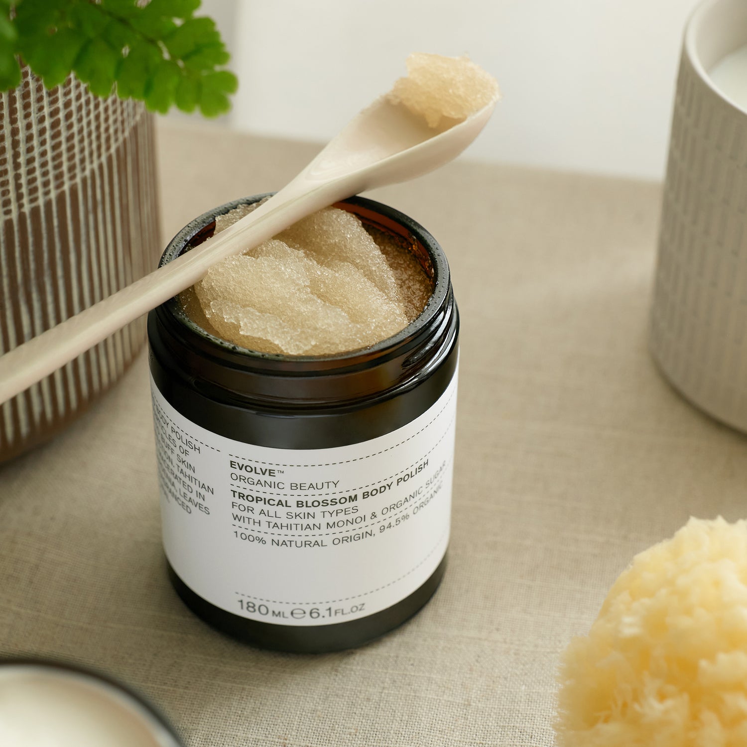 Indulge in a tropical getaway without leaving your bathroom with Tropical Blossom Body Polish. Crafted with organic sugar particles, this luxurious scrub buffs away dead skin cells for irresistibly smooth and radiant skin. The exotic Tahitian Monoi and Gardenia scent transports you to a sun-drenched paradise while natural sugar extracts leave your skin deeply nourished and beautifully scented.
