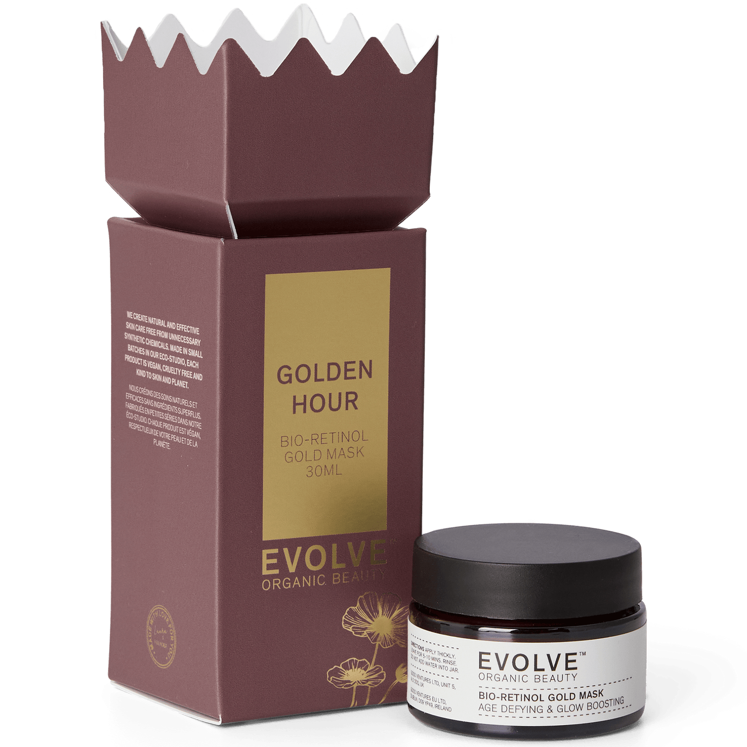 The Golden Hour Cracker by Evolve Organic Beauty is a luxurious bio-retinol gold face mask designed to nourish and restore radiance. Infused with bio-retinol and organic Argan Oil, this mask provides a quick-fix treatment to plump, hydrate, and illuminate the skin. Suitable for all skin types, it offers a natural alternative to retinol, smoothing fine lines and promoting a youthful glow. Ideal as a thoughtful gift or a self-care indulgence, this mask delivers instant luminosity and rejuvenation.