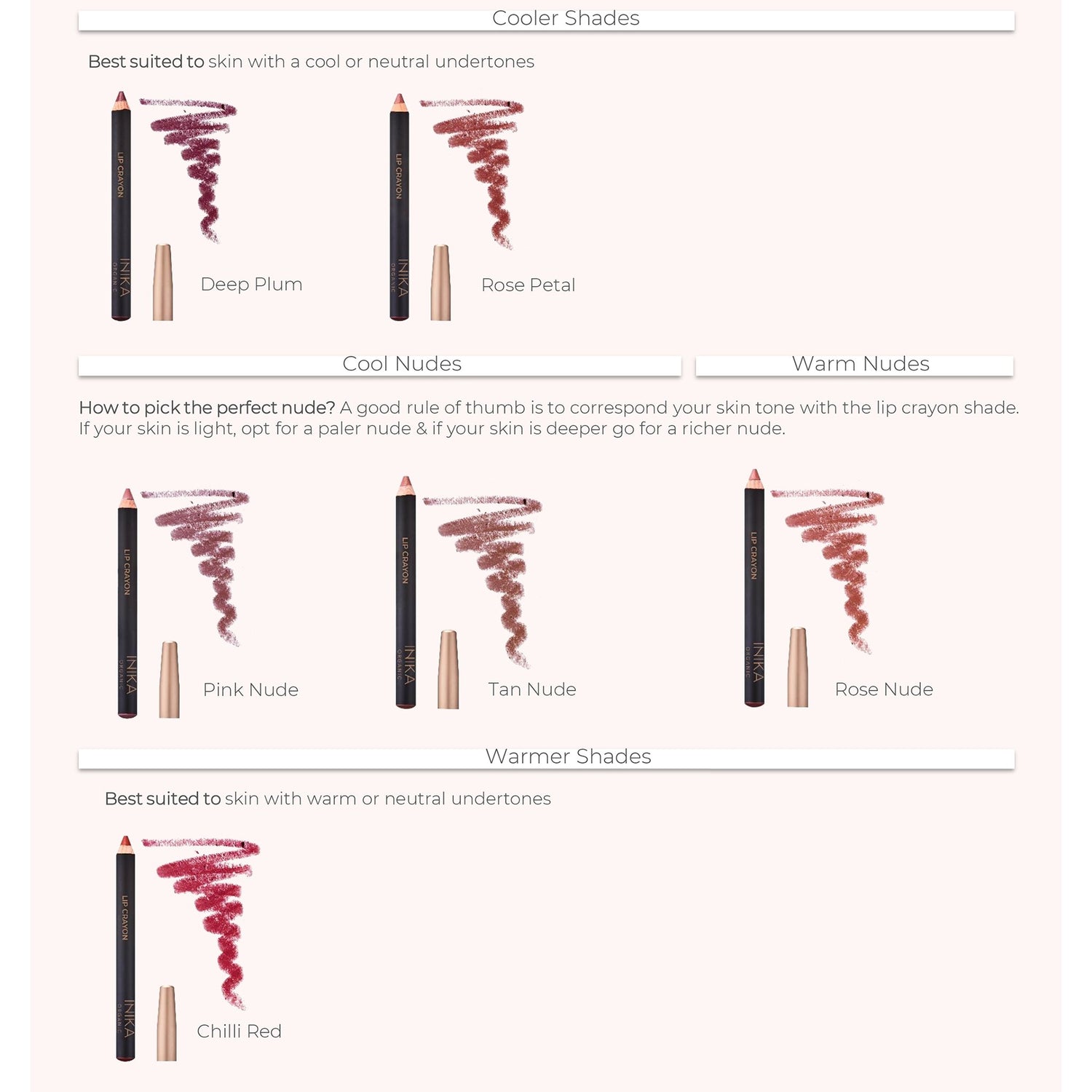 Meet your new handbag essential: the INIKA Organic Lip Crayon! This little beauty is a powerhouse, blending the vibrant colour and smooth feel of a lipstick with the precision of a lip liner. Infused with Certified Organic botanical extracts, it not only delivers stunning colour but also nourishes your lips with Coconut Oil, rich in essential fatty acids and Vitamin E. The Carnauba Wax gives a natural shine, and the eco-friendly packaging is a win for the planet. Enjoy a bold, long-lasting, satin-finish pout with INIKA Organic Lip Crayon, available in nine fabulous shades: Tan Nude, Rose Nude, Pink Nude, Rose Petal, Deep Plum, Chilli Red, Honey, Mauve and Crimson. Get ready to pucker up and shine!