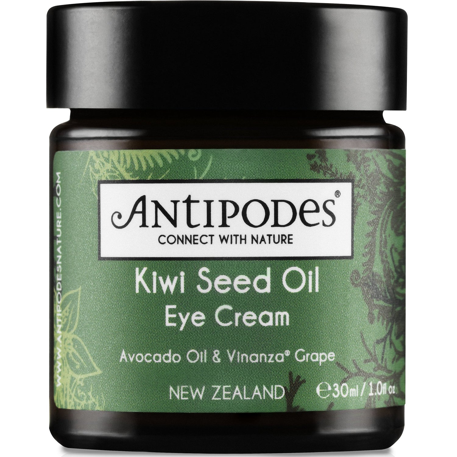 Antipodes Kiwi Seed Oil Eye Cream is a luxurious yet lightweight eye cream designed to hydrate and rejuvenate the delicate skin around the eyes. Infused with vitamin C-rich kiwi seed oil, it supports collagen production and helps reduce the appearance of fine lines and wrinkles. The addition of Vinanza® Grape extract, derived from Marlborough sauvignon blanc grape seeds, enhances skin elasticity and provides antioxidant protection. Avocado oil further nourishes and moisturizes, leaving the skin feeling firm and revitalized. This fragrance-free formula is suitable for all skin types and comes in eco-friendly, recyclable packaging.