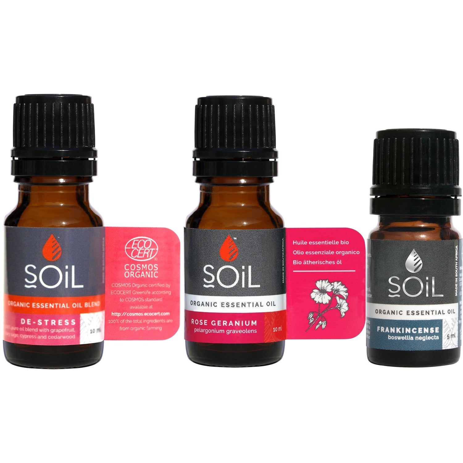 The SOiL Organic Exhale Trio is your go-to for ultimate relaxation and stress relief. This delightful set of 100% pure organic essential oils includes Frankincense, Rose Geranium, and a De-Stress blend. Frankincense is perfect for calming the nerves and enhancing meditation, while Rose Geranium lifts your spirits and eases anxiety. The De-Stress blend, with its mix of Grapefruit, Clary Sage, Cypress, and Cedarwood, expertly melts away tension and revitalises your wellbeing. Whether you're looking to unwind after a long day or searching for the perfect gift, this trio is your ticket to composed tranquillity. Dive into relaxation and let SOiL take you on a journey to serenity.