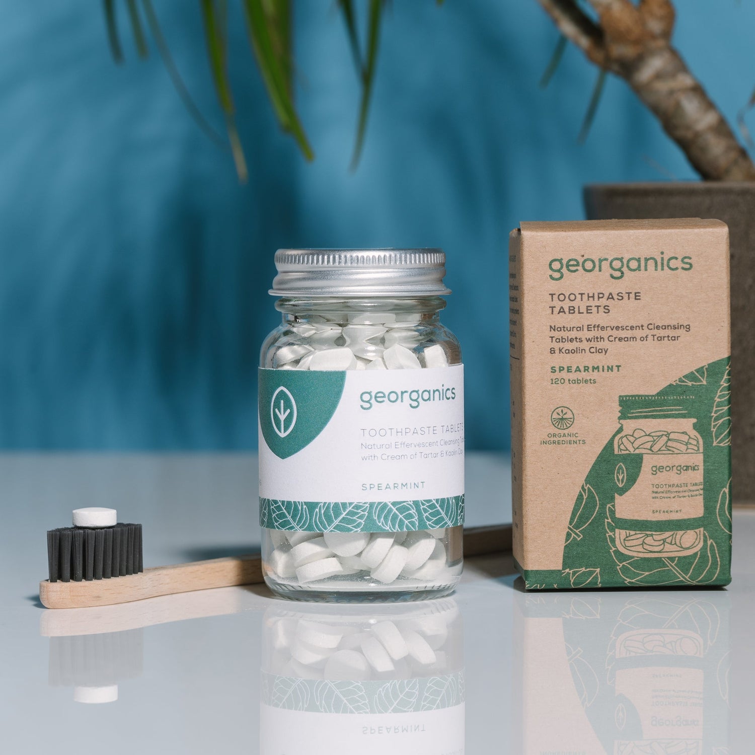 Georganics Mineral Toothpaste Tablets – Spearmint offer a plastic‑free, fluoride‑free alternative to conventional toothpaste. Made with mineral‑rich powders like calcium carbonate, kaolin clay, sodium bicarbonate, and cream of tartar, these chewable tablets gently clean and polish teeth while freshening breath with antibacterial spearmint essential oil. The non‑foaming, SLS‑ and glycerin‑free formula supports gentle oral care. COSMOS Natural certified, vegan, cruelty‑free, and packaged in a reusable glass jar with compostable label
